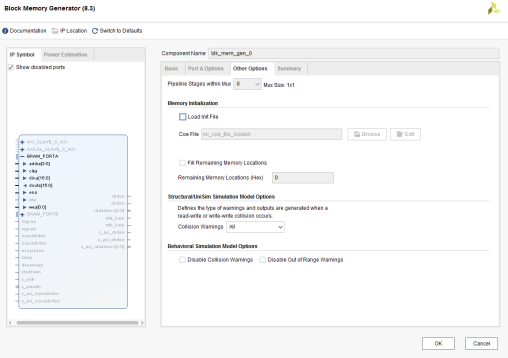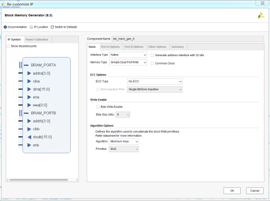 Vivado2017.2 中BRAM版本为 Block Memory Generator Specific Features 8.3