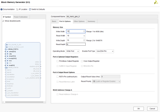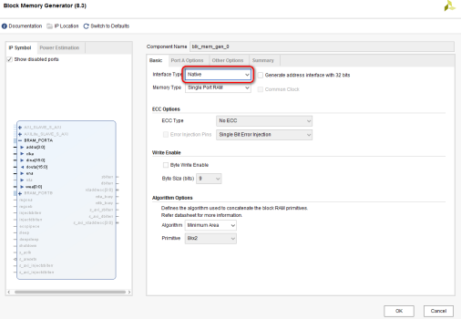 BRAM核支持两种总线形式的输入输出:Native or AXI4