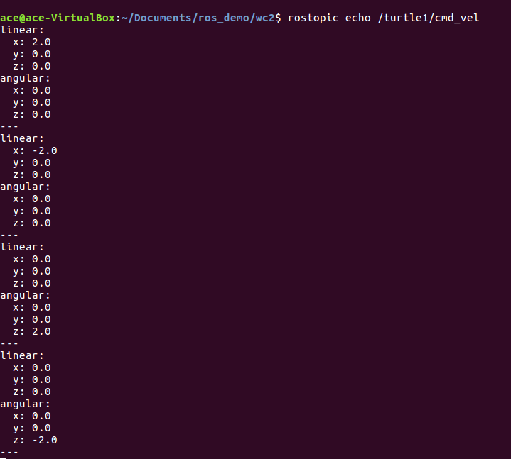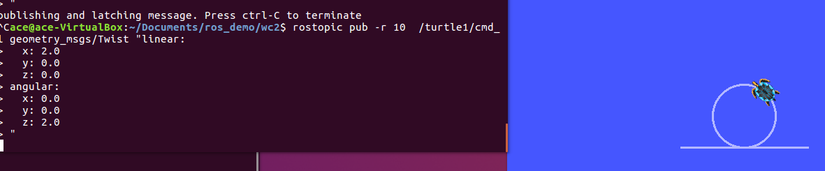 rostopic pub -r 10 /turtle1/cmd_vel geometry_msgs/Twist "linear: