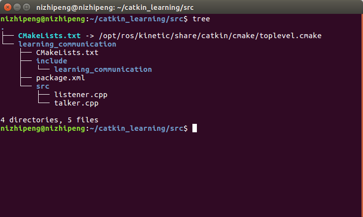 listener.cpp,talker.cpp,CMakeLists.txt三部分。