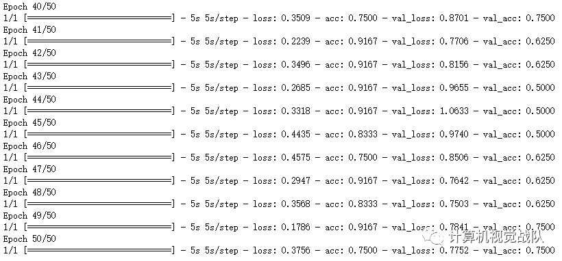 再来看看运行过程的损失及精度,我最后设置了50次EPOCH。