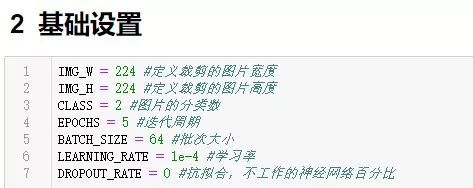 该处主要定义类别数(本次我用了两类,所以CLASS = 2)、EPOCH是迭代周期、BATCH_SIZE是批次大小(也就是一次输入多少图像),学习率及dropout的比例这几个参数都比较好理解,平台之前也专门讲解过调参技巧,有兴趣的可以去历史推送查阅: