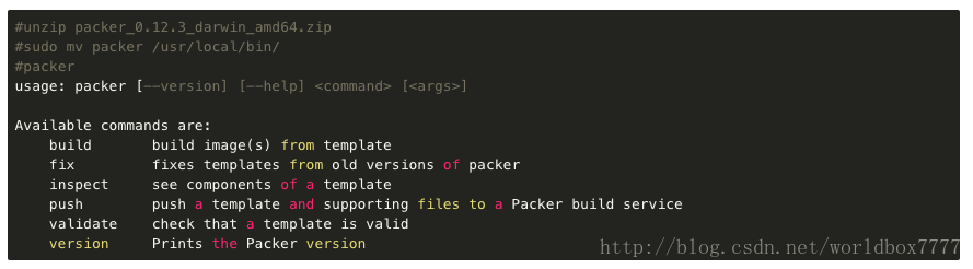 然后打开终端,导航到下载目录下,执行如下命令,如果得到如下图的输出,packer就安装好了: