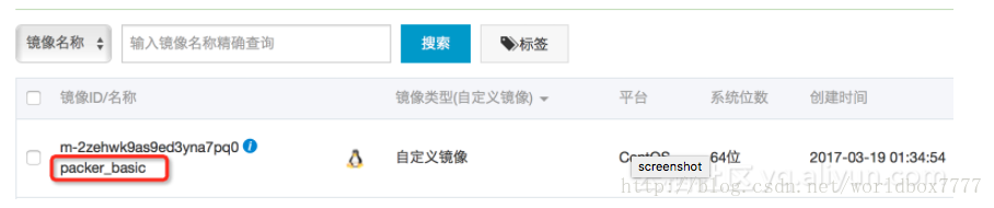 3. 十几分钟后,你就可以在自定义镜像列表里看到刚刚创建好的镜像packer_basic