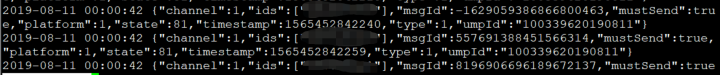 我现在搞的那个系统,我们还使用日志在系统的执行链路上打点。比如说,我现在要推送一条通知消息,通知消息其实就是下面这种: