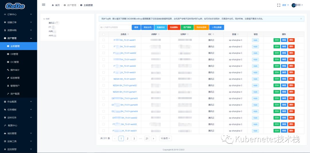 3.资产数据管理:可以自动获取到常用的云服务商的相关服务信息,并且可以对资产和权限细化,并且提供了强大的多对多的自动标记功能和堡垒机功能。