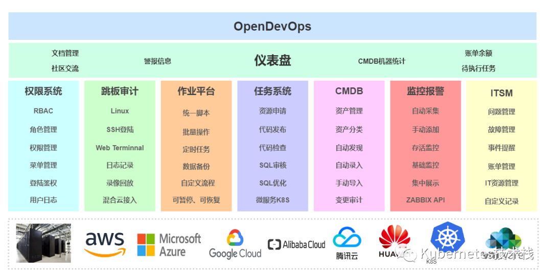 我们统称为一站式DevelopOps,为什么叫做一站式。就是运维工作中可能因某个需求,为了解决维护问题,但是最终发现,你部署了多个系统,而这些系统互不依赖,会出现账户、权限管理混乱,监控、警报不能汇总、任务、配置不能统一管理等问题。