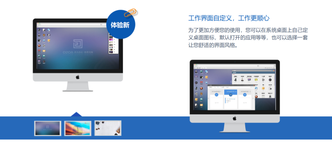 O2OA默认采用桌面式办公系统形式,给您更新颖的办公体验。