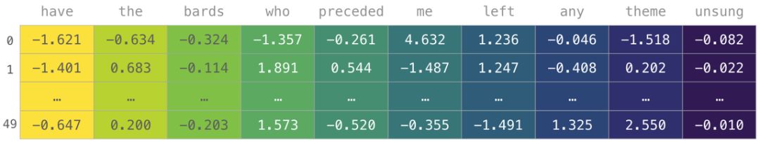 模型需要先查看大量文本,再用数字表示这位诗人的话语。我们可以让它处理一个小数据集,并用它来构建一个词汇表(71,290 个单词):