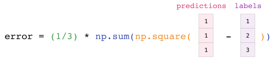 实现可用于矩阵和向量的数学公式是 NumPy 的关键用例。这就是 NumPy 是 python 社区宠儿的原因。例如均方差公式,它是监督机器学习模型处理回归问题的核心: