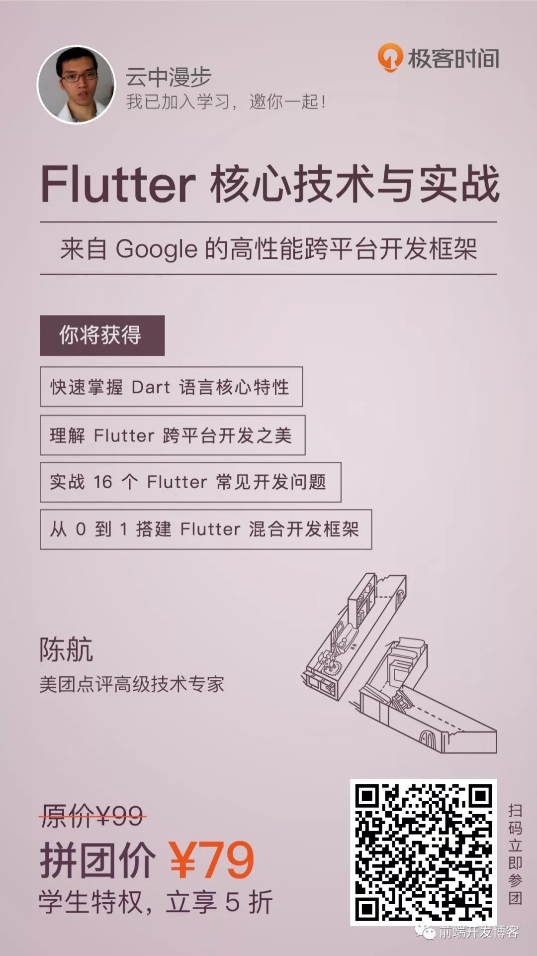 5.Flutter 综合应用模块。他将和你聊聊在企业级应用迭代的生命周期中,如何从效率和质量这两个维度出发,构建自己的 Flutter 开发体系。
