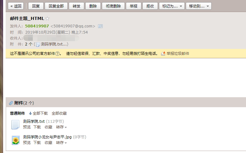 发送HTML内容的邮件,需要将MIMEText中的plain值改为html,这样就可以将html内容直接显示在邮件内容里了。