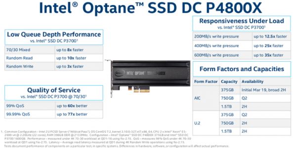 我们先来看Optane用作变异版的SSD的场景。之所以说是变异版,是因为Optane的一些特性能秒杀NAND SSD,其中以稳定性和低延迟最令人印象深刻,这点非常企业级。