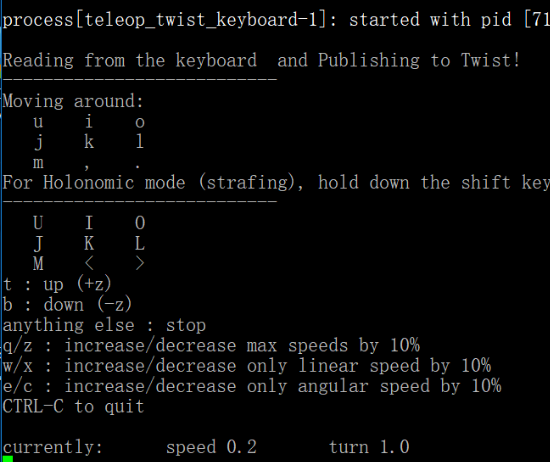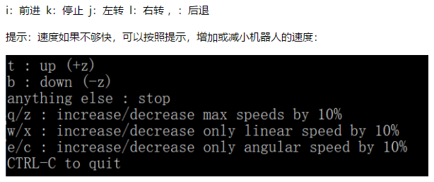 在pc键盘按上面方向提示键,就可以看到小车机器人在运行