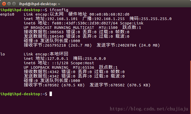 图中第二行 inet 地址:192.168.1.101 就是你的电脑在局域网的IP地址了