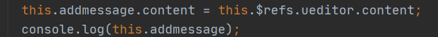 完成,刷新一下界面就可以看到富文本的内容了,然而有的小伙伴有这样一个问题,通过引入的方式,这样如何去访问到UE.vue中的content,也就是我们双向绑定的内容呢