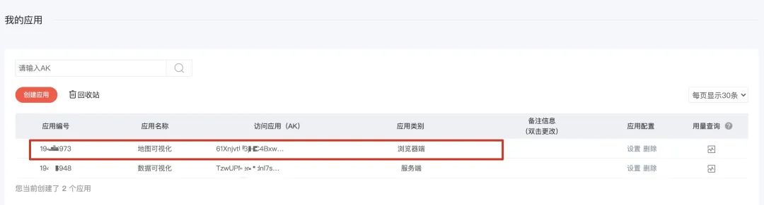 选择浏览器端,按照指示创建一个地图可视化应用,以申请到AK结束