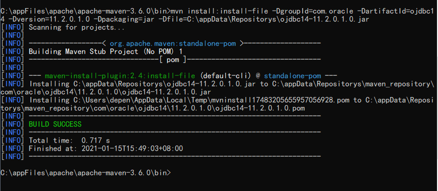 [INFO] Installing C:\appData\Repositorys\ojdbc14-11.2.0.1.0.jar to C:\appData\Repositorys\maven_repository\com\oracle\ojdbc14\11.2.0.1.0\ojdbc14-11.2.0.1.0.jar