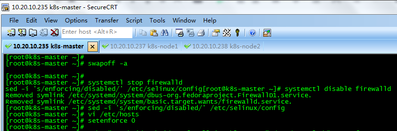 2)三台主机均关闭防火墙,selinux,并关闭swap分区