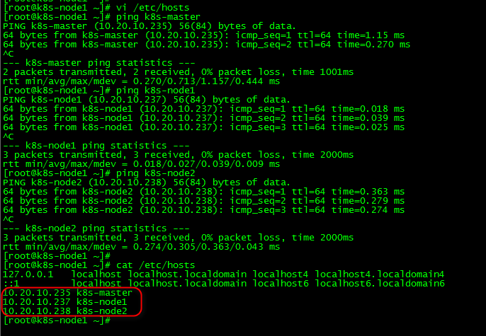 三台都修改vi /etc/hosts文件,加入主机名解析