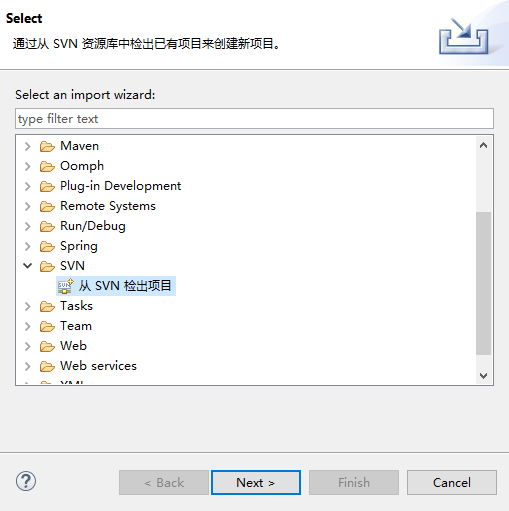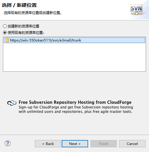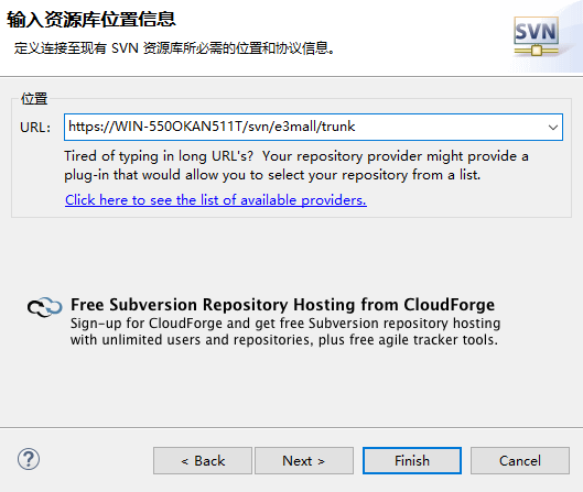 客户端使用Eclipse的svn插件,在提供的Eclipse中已经安装好,直接使用即可。