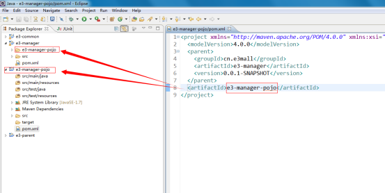 |--e3-common:通用的工具类通用的pojo。打包方式jar