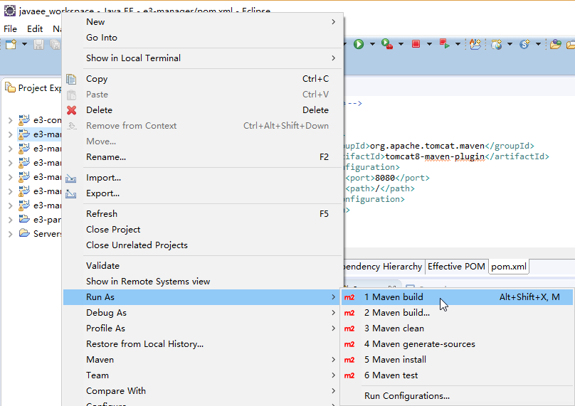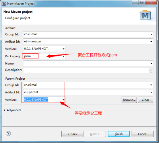 e3-parent:父工程,打包方式pom,管理jar包的版本号。