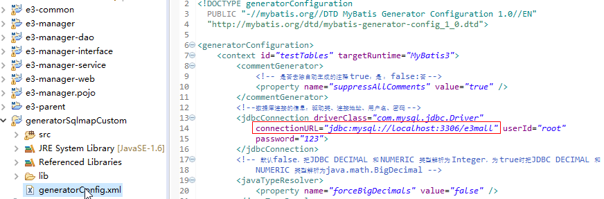 在e3-manager-dao工程的pom文件中添加如下内容: