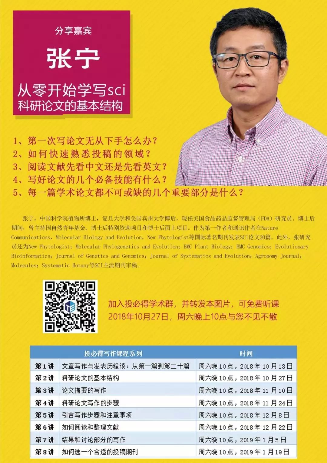 张宁博士为您带来SCI发表的秘诀,手把手教你成为科研大牛!