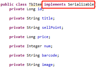 问题:java.lang.RuntimeException: Serialized class cn.e3mall.pojo.TbItem must implement java.io.Serializable