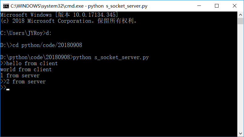 该实例中,只能 client 发一句, server回一句(先启动server,后启动client)