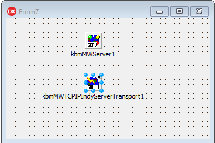 在这种情况下,我们将添加一个简单的Form,为我们的kbmMW组件提供GUI和位置。