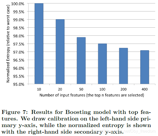 当我们包含了更多的特征时候, 标准交叉熵(NE)具有相似的递减回归属性(即随着特征的增大,NE降低速率逐步降低至0)。