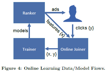 这里最关键的步骤就是把 labels(click/no-click) 和训练输入 (ad impressions) 以一种在线的方式连起 (join) 起来。所以系统被称为 online data joiner。