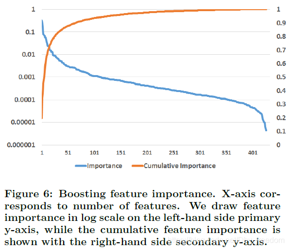 为了在资源消耗和模型性能之间做到平衡,可以通过控制Feature Count来调节。如果想删掉一些特征的话,那么就需要研究这些特征的重要程度的分布,并研究删除部分特征后的效果。