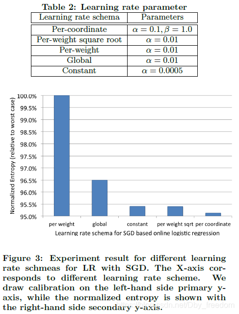 为此,Facebook针对SGD-based online learning研究了5中学习速率的设置方式,如下: