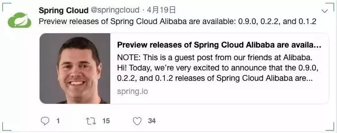 Spring Cloud 联合创始人 Spencer Gibb 在 Spring 官网的博客页面宣布该发板消息。随后,Spring Cloud 官方 Twitter 也发布了此消息