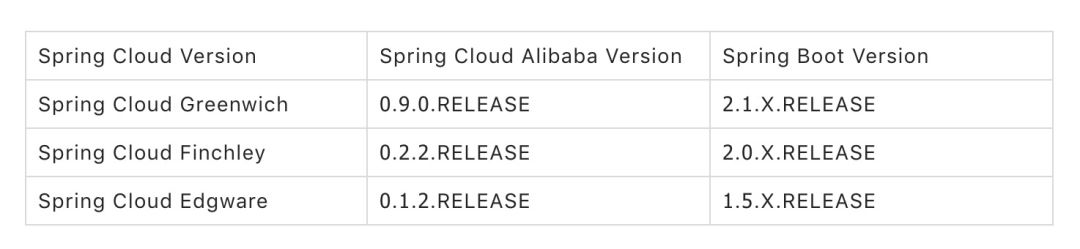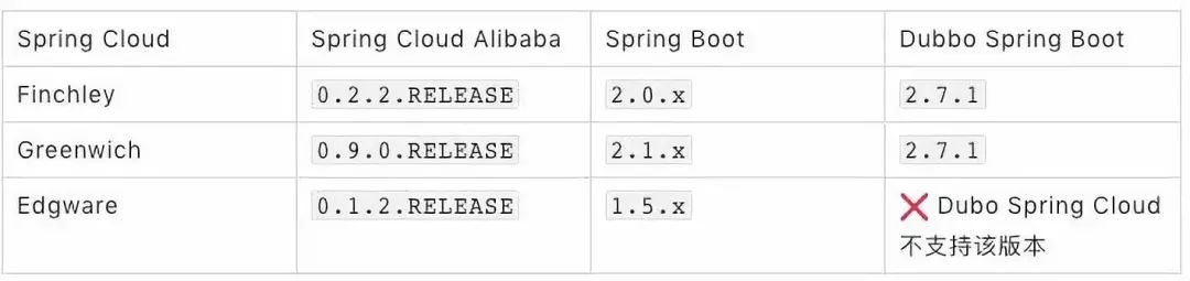 以下表格将说明 Dubbo Spring Cloud 版本关系映射关系: