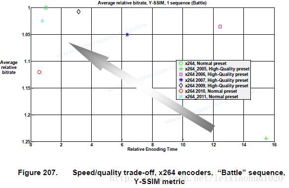 此外,作为最优秀的H.264编码器x264.对比了其各个版本之间性能的区别,排序如下,可以看出其一直是出于发展状态的。