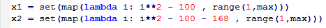 ③求出x1、x2后,由于x1、x2分别为一半题目的解,这时题意就变为求同时满足x1、x2的x的所有可能;通过set( )将list转变为无序且不重复的集合,再将set进行数学的集合运算,即求交集,得到答案x