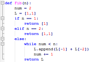 PS:结合斐波那契数列的特性,先设立特殊情况【即前两个[1]】,再利用Python从后遍历,使用append