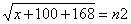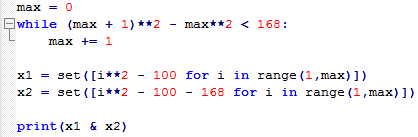 【3】一个整数,它加上100后是一个完全平方数,再加上168又是一个完全平方数,请问该数是多少?