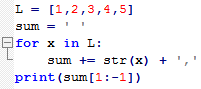 【11】按逗号分隔列表,如L = [1,2,3,4,5],返回1,2,3,4,5