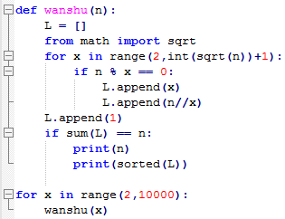 【8】一个数如果恰好等于它的因子之和则称为"完数"。例如6=1+2+3.编程找出1000以内的所有完数。