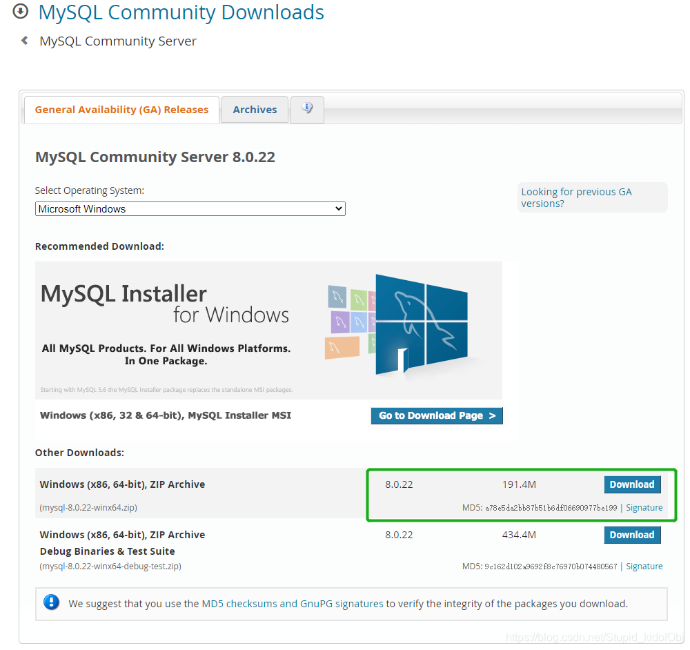 官网下载地址:https://dev.mysql.com/downloads/mysql/