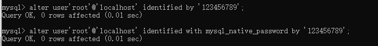 alter user 'root'@'localhost' identified by 'root';(by 接着的是密码)
