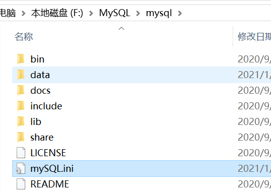 创建mySQL.ini,改为ANSI格式,basedir和datadir改成解压路径