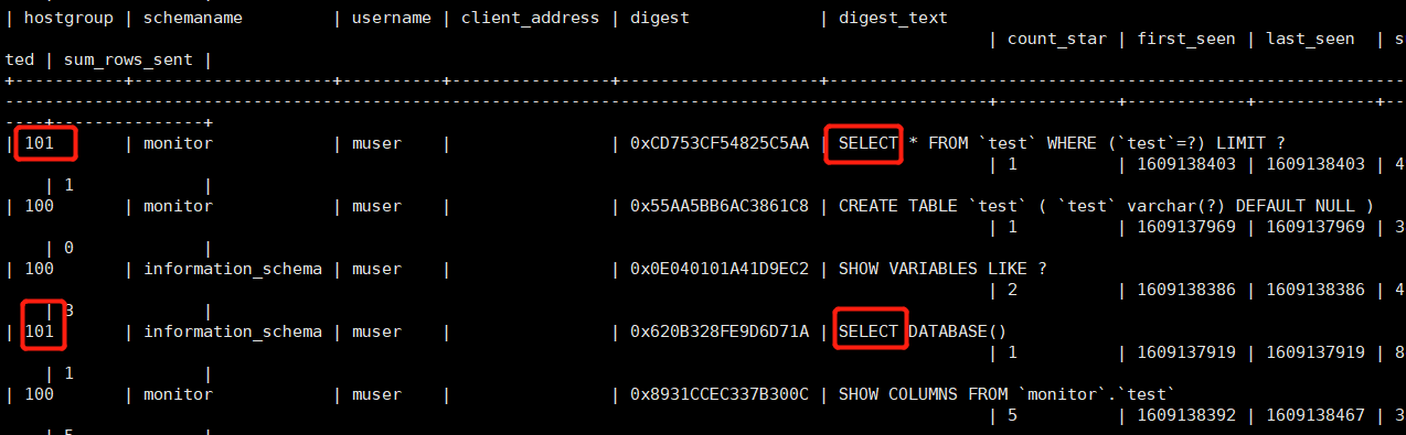 登录proxysql的管理6032端口:select * from stats_mysql_query_digest;