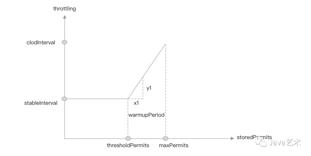 x1:当前令牌桶中超过thresholdPermits的令牌数量;