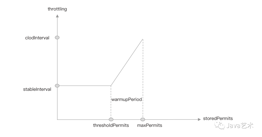 warmupPeriod = (stableInterval + coldInterval)* (maxPermits - thresholdPermits)/ 2